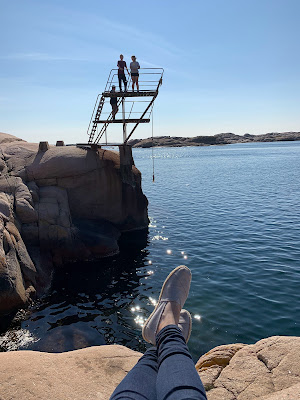 Wir machten Fotos und fuhren dann wieder zurück, um uns auf den Weg nach Fjällbacka zu machen. Ein kleines Örtchen an der Küsten, in dem sich Ingrid Bergman zu Lebzeiten so wohlgefühlt hatte, dass ihre Asche nach dem Ableben dort ins Meer gestreut und ihr ein Platz und eine Rosensorte gewidmet wurden. Es ist hübsch dort, aber auch sehr überschaubar, sodass wir nicht so recht wussten, was wir dort noch sollten.
